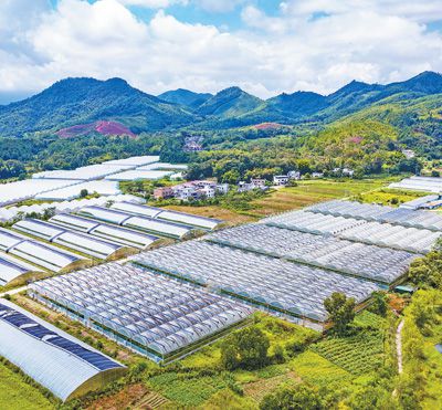 近年來,江西省全南縣積極調整農業產業結構,采取“黨支部+合作社+農戶”的模式,大力發展大棚蔬菜產業,促進農業增效、農民增收,助力鄉村振興。圖為該縣龍源壩鎮萬背村,錯落有致的民居、村道與大棚蔬菜產業基地組成一幅美麗畫卷。