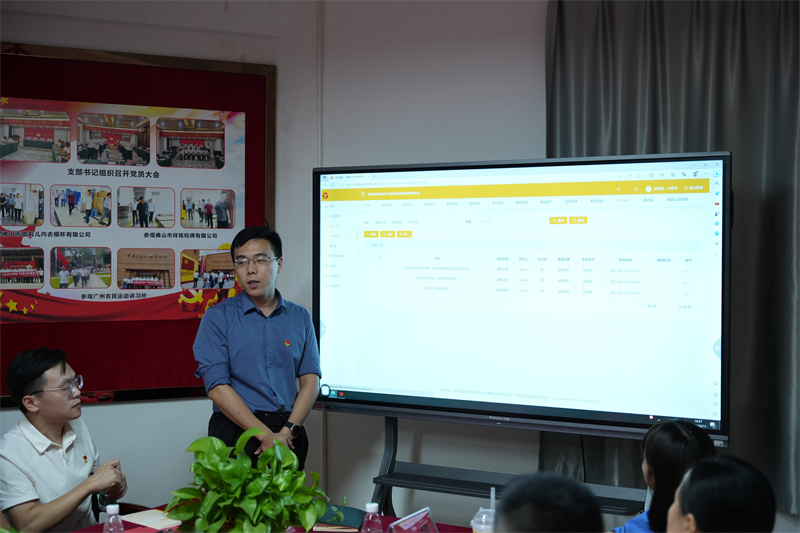 萬載縣委組織部工作人員對“紅帆”APP進行介紹。宜春市駐粵港澳大灣區流動黨員黨委辦公室供圖
