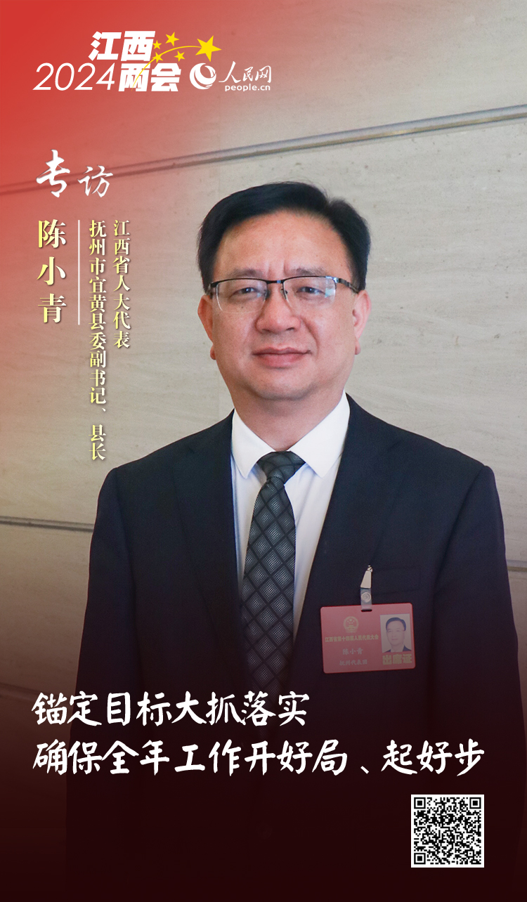 【編者按】2024年江西省兩會召開期間,人民網推出“‘走在前 勇爭先 善作為’|2024江西兩會代表委員系列訪談”節目,聚焦各地如何解放思想、開拓進取,揚長補短、固本興新,努力在加快革命老區高質量發展上走在前、在推動中部地區崛起上勇爭先、在推進長江經濟帶發展上善作為,奮力譜寫中國式現代化江西篇章,圍繞打造“三大高地”、實施“五大戰略”,為江西經濟社會高質量發展作出新的貢獻。江西省人大代表、撫州市宜黃縣委副書記、縣長陳小青接受了我們的專訪,以下為訪談實錄: