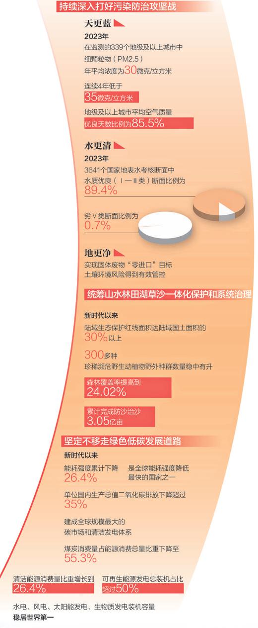 結合一年來在推進中國式現代化過程中生態文明建設的新成就新探索,代表委員表示,要持之以恒推進生態文明建設,協同推進降碳、減污、擴綠、增長,以高品質生態環境支撐高質量發展,加快推進人與自然和諧共生的現代化。