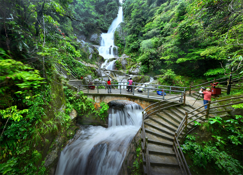 游客在金竹飛瀑景區打卡游玩。樂安縣委宣傳部供圖