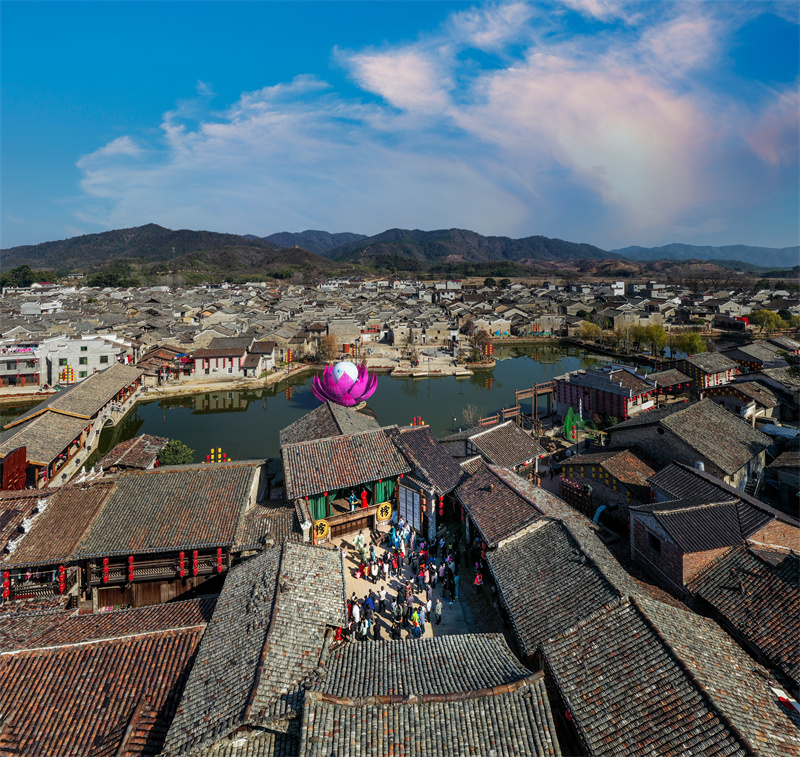 在文化建設方面,依托本地千年文化底蘊,打造了《流芳》《狀元巡游》等沉浸式演出,夜景燈光秀、水幕電影、非遺儺舞表演等項目不斷上新,吸引了大批游客慕名前來游玩、研學。