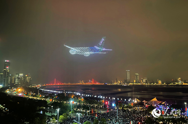 南昌市迎春煙花晚會上的無人機表演。人民網記者 毛思遠攝