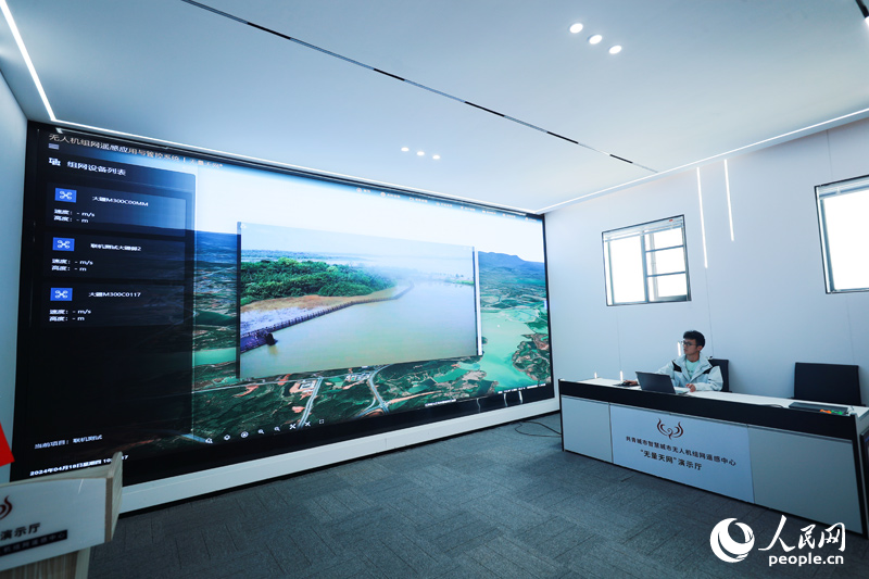 走進江西翱翔星云科技有限公司“如來天網”數字沙盤數據引擎控制中心,記者看到,在技術人員的遠程操控下,布局在南湖沿岸的2架無人機同時升空,組網開展空中河湖巡查,并實時回傳相關圖像、數據至控制中心后臺。