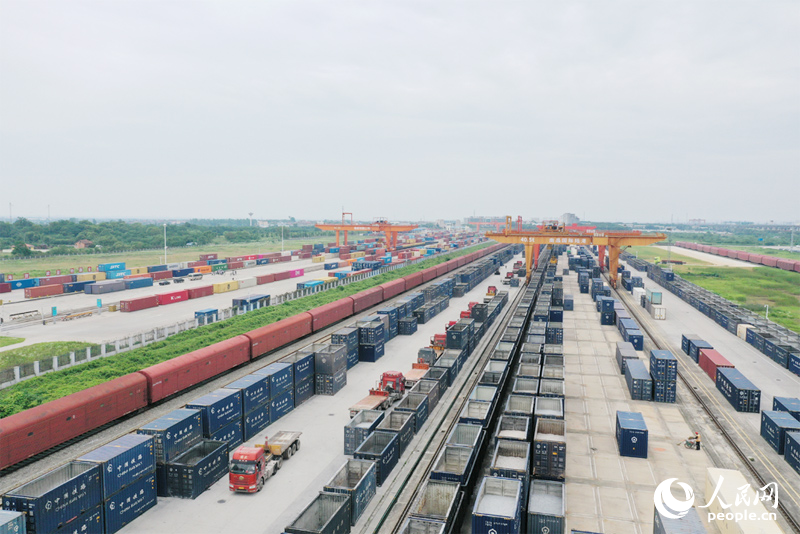 南昌國際陸港一派繁忙景象。目前,該國際陸港已形成東西雙向互濟、陸海內外聯動的開放格局。人民網記者 時雨攝