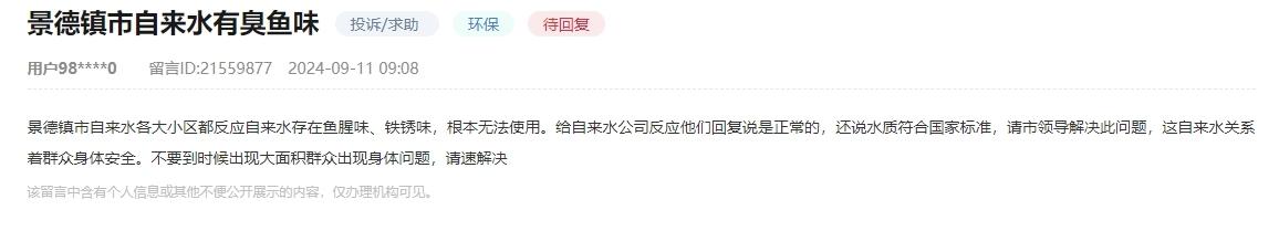 急難愁盼丨家中自來水有腥臭味不敢食用?景德鎮最新回應