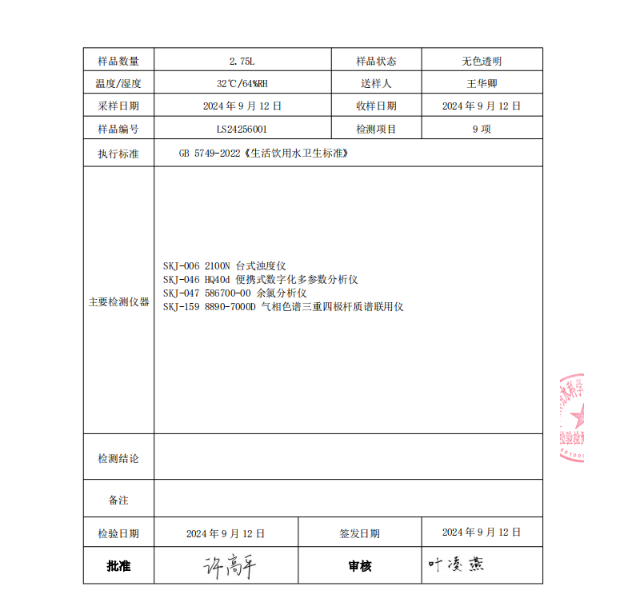 記者在景德鎮水務有限責任公司官網查詢到,該公司于9月13日公布了9月12日洋湖出廠水水質報告。