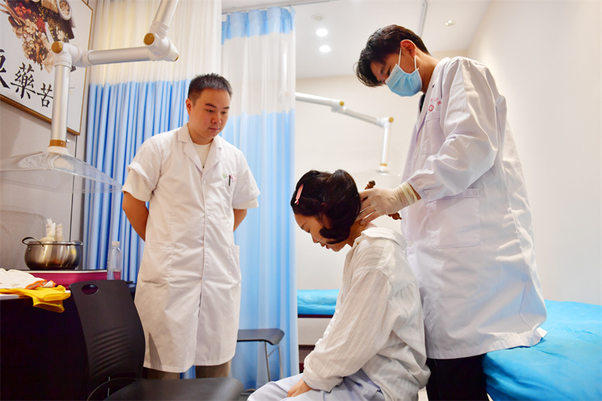 人民網樟樹10月17日電(記者時雨)“連續做了兩次針灸治療之后,偏頭疼緩解了不少,中醫治病真管用?!?7日,在江西省樟樹市樟幫中醫藥一條街國醫館,市民劉女士經過專家對癥施治后,感覺病疼減輕不少,不禁連連贊嘆中醫診療的神奇。