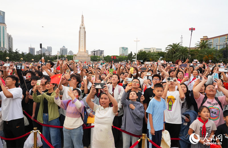 10月1日,數萬游客市民齊聚南昌八一廣場,觀看升國旗儀式。人民網記者 毛思遠攝