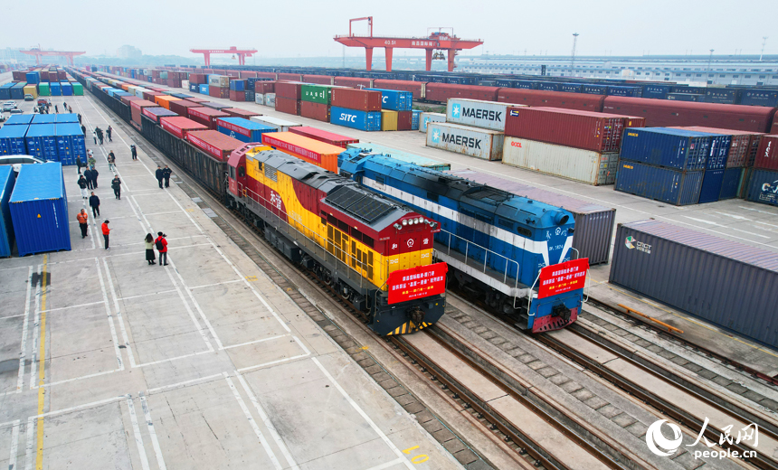 兩列滿載著“江西制造”的鐵海聯運班列依次駛出南昌國際陸港。人民網記者 毛思遠攝