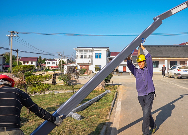 在隨后的幾個月里,武寧縣各個移民村組都可以看到工人安裝路燈的畫面?!斑@幾天在我們村裝路燈,燈體除了有照明燈,還有一條霓虹燈,太洋氣了?!蔽鋵幙h新寧鎮南市村村民笑道。