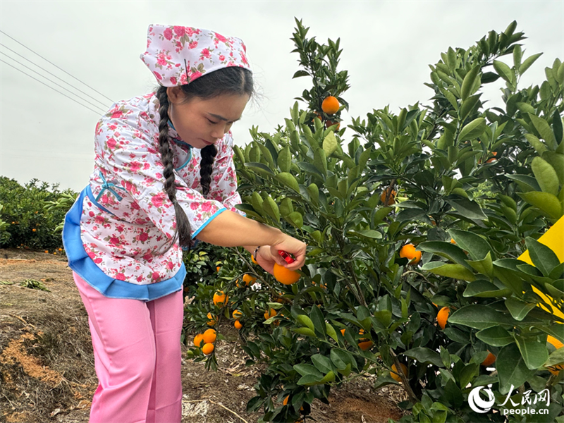 在寧都縣竹笮鎮鵝婆臍橙基地,游客正在采摘臍橙。人民網記者 羅娜攝