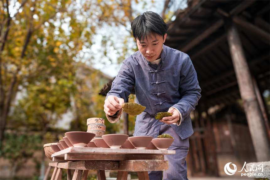 拉坯、上釉、放葉……12月26日,在江西省吉安縣吉州窯古陶瓷研究所作坊內,工匠們正在制作木葉紋盞。