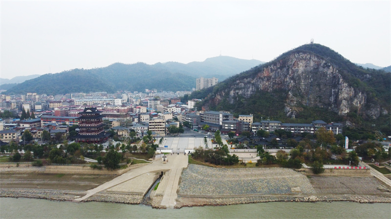 觀音山腳下的狄公樓、五柳書院佇立在長江之畔。人民網 龍楚良攝