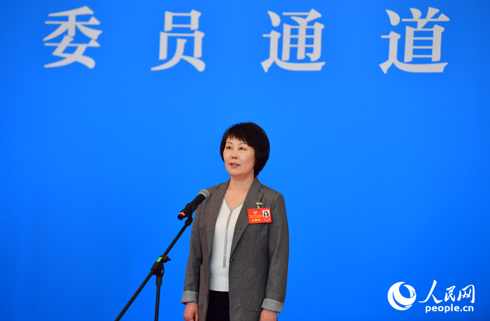 江西省政協委員,江西省婦聯黨組成員、副主席劉麗在“委員通道”接受采訪。人民網記者 時雨攝