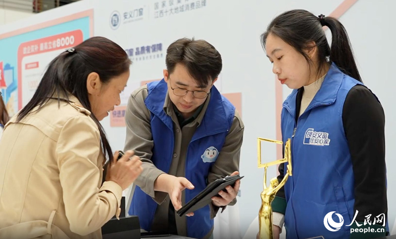 消費者正在咨詢門窗以舊換新活動。人民網 涂詩軒攝