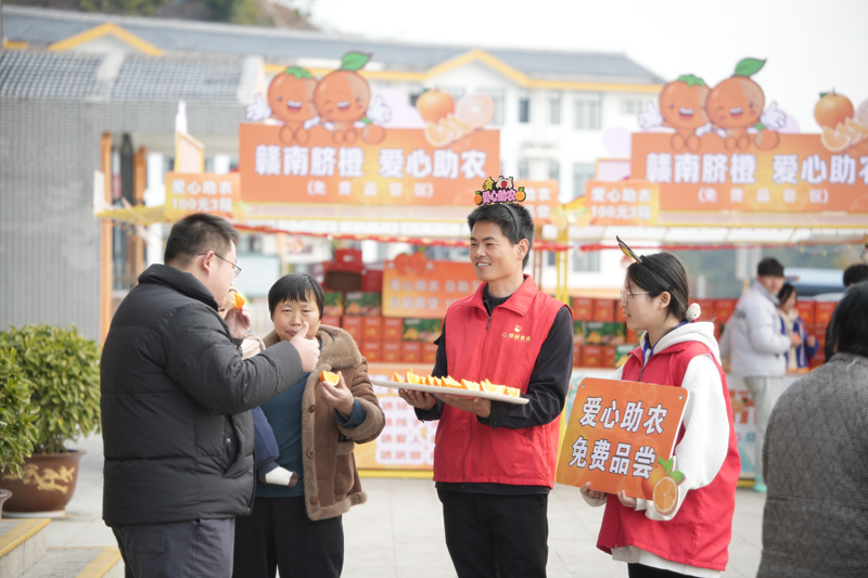 今年春運期間,在江西交投暢行公司贛州片區的服務區里,多了一道“紅橙交織的風景線”,幫助果農銷售贛南臍橙的助農志愿者們身穿紅馬甲,端著橙香四溢的果盤來到司乘身邊,熱情地邀請來自全國各地的司乘旅客試吃江西特產——贛南臍橙。不少司乘朋友品嘗后主動下單購買,一箱箱橙子搬上汽車后備箱,成為大家回家過年時果籃子里的江西好禮。