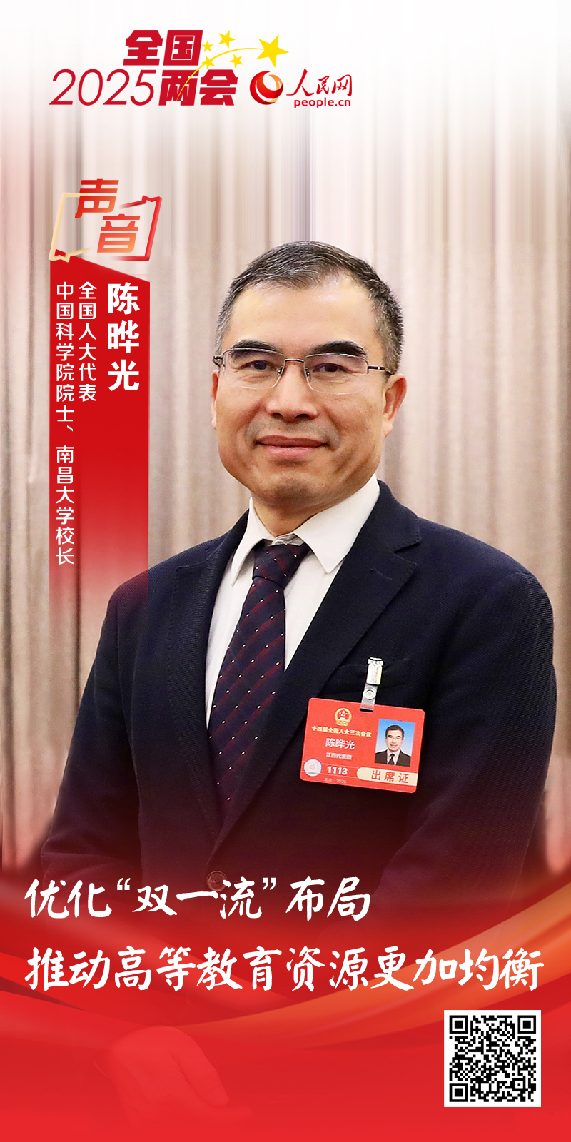 全國人大代表、中國科學院院士、南昌大學校長陳曄光——