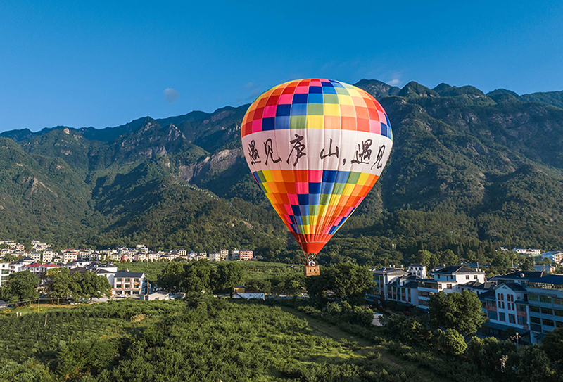在廬山,游客乘上色彩斑斕的熱氣球,邂逅秀麗山川。廬山飛行樂園供圖