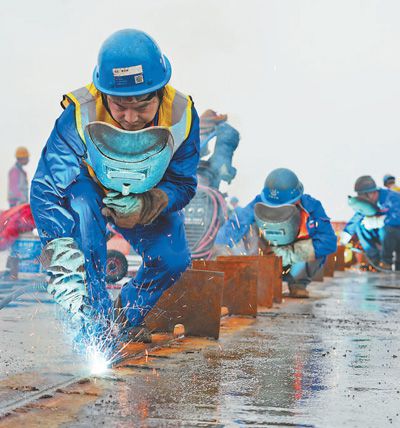 工人們進行焊接作業。