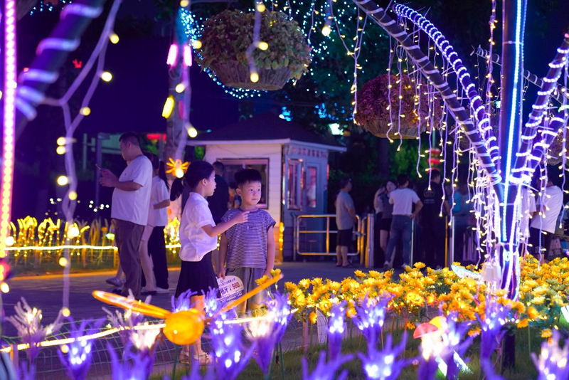 2025年7月5日晚,位于江西省撫州市臨川區的三翁花園里,千組造型各異、流光溢彩的花燈為市民游客帶來一場精彩絕倫的視覺盛宴。近年來,當地文旅大力打造旅游特色景區,打造夜購、夜食、夜娛等多元化夜間消費主題場景,共同推動夜間經濟煥發新活力,助力城市“夜經濟”持續升溫。(郭昊)