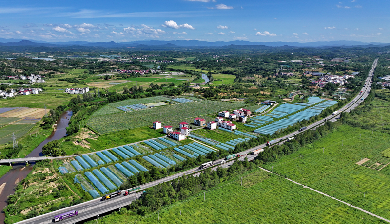 濟廣高速鷹潭至南豐段南豐縣萊溪鄉路段,大型貨車往來疾馳、運輸繁忙。人民網 朱海鵬攝