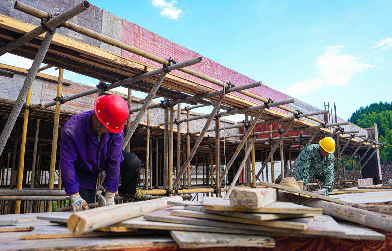 9月18日,江西省撫州市南豐縣市山鎮畬族文化活動中心項目建設現場,工人們正在緊張有序地進行施工。近年來,南豐縣各鄉鎮將項目建設作為推動鄉村振興的重要抓手,促使農村基礎設施升級提檔、公共服務更加完善。(李煜祖攝影報道)