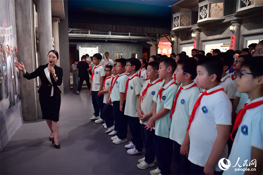 陳列館講解員為學生們講述抗戰故事。人民網記者 時雨攝