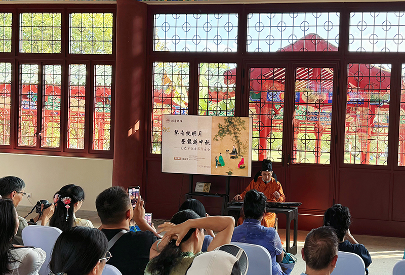 鐘陵軒內,一場以 “琴音繞明月 墨韻滿中秋” 為主題的乙巳中秋古琴音樂會舉行。馮婷婷攝