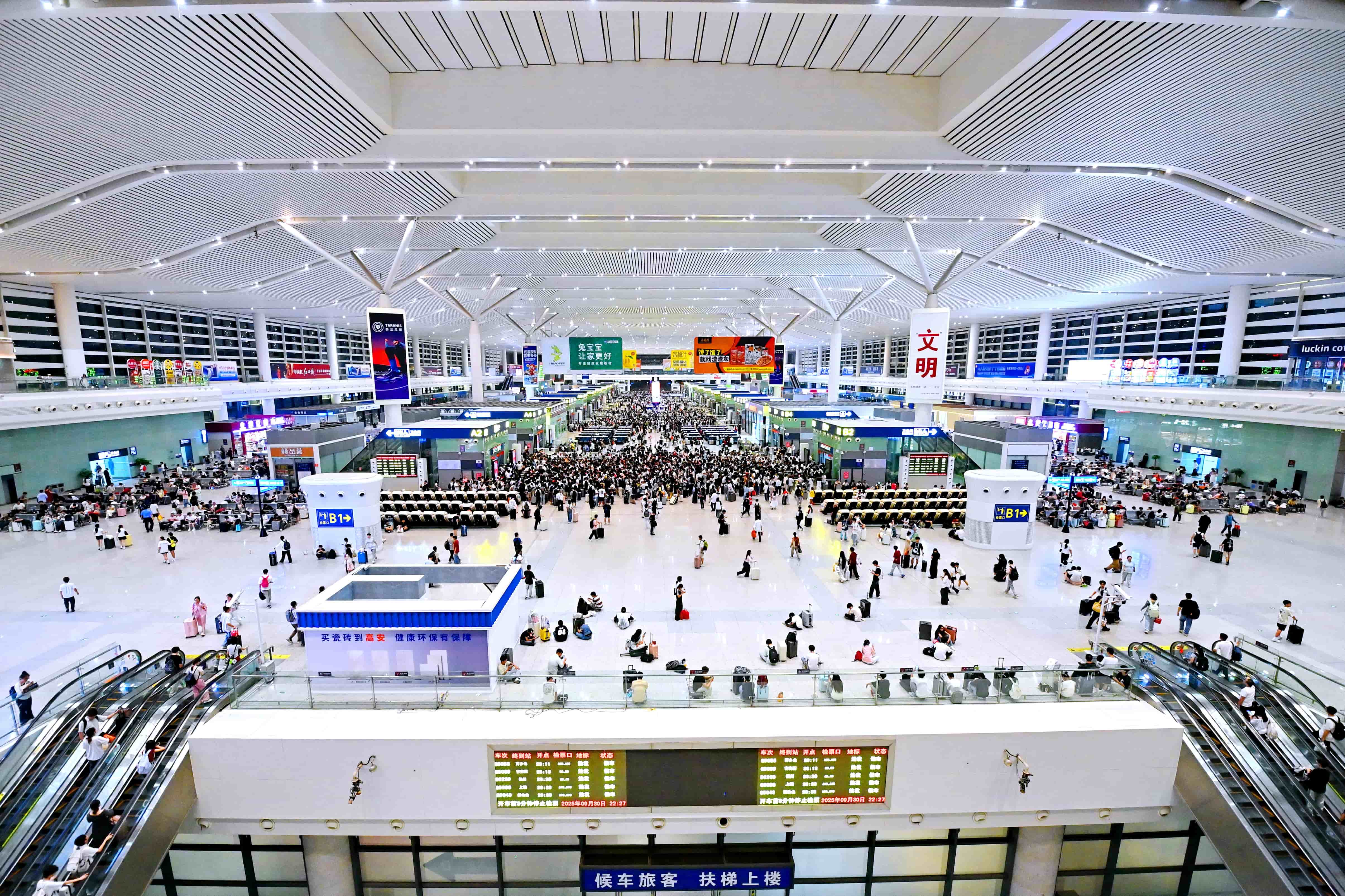 9月30日晚,人流如織的南昌西站候車大廳。人民網 朱海鵬攝