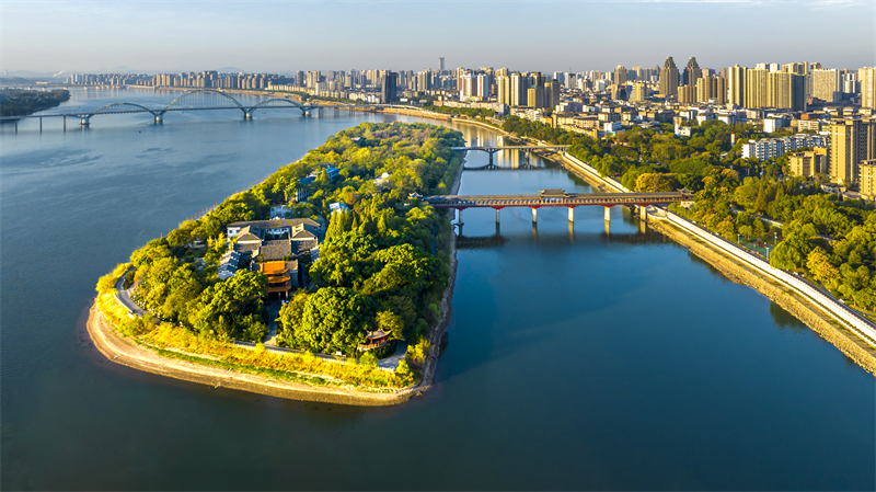 白鷺洲書院和白鷺洲中學位于吉安市內贛江江心的一片綠洲上。白鷺洲書院供圖