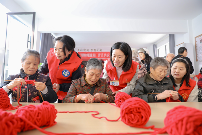 在重陽節來臨之際,江西省撫州市南豐縣民政局、解放路社區聯合開展“銀齡暖重陽,歲月共安康”敬老活動,志愿者提前備好各色毛線、編織棒針等工具,逐一為到場老人分發,并耐心講解基礎編織手法?;顒右悦€為媒、以針棒為紐帶,在歡聲笑語中傳遞關愛,讓傳統佳節充滿別樣溫情。(彭琛攝影報道)